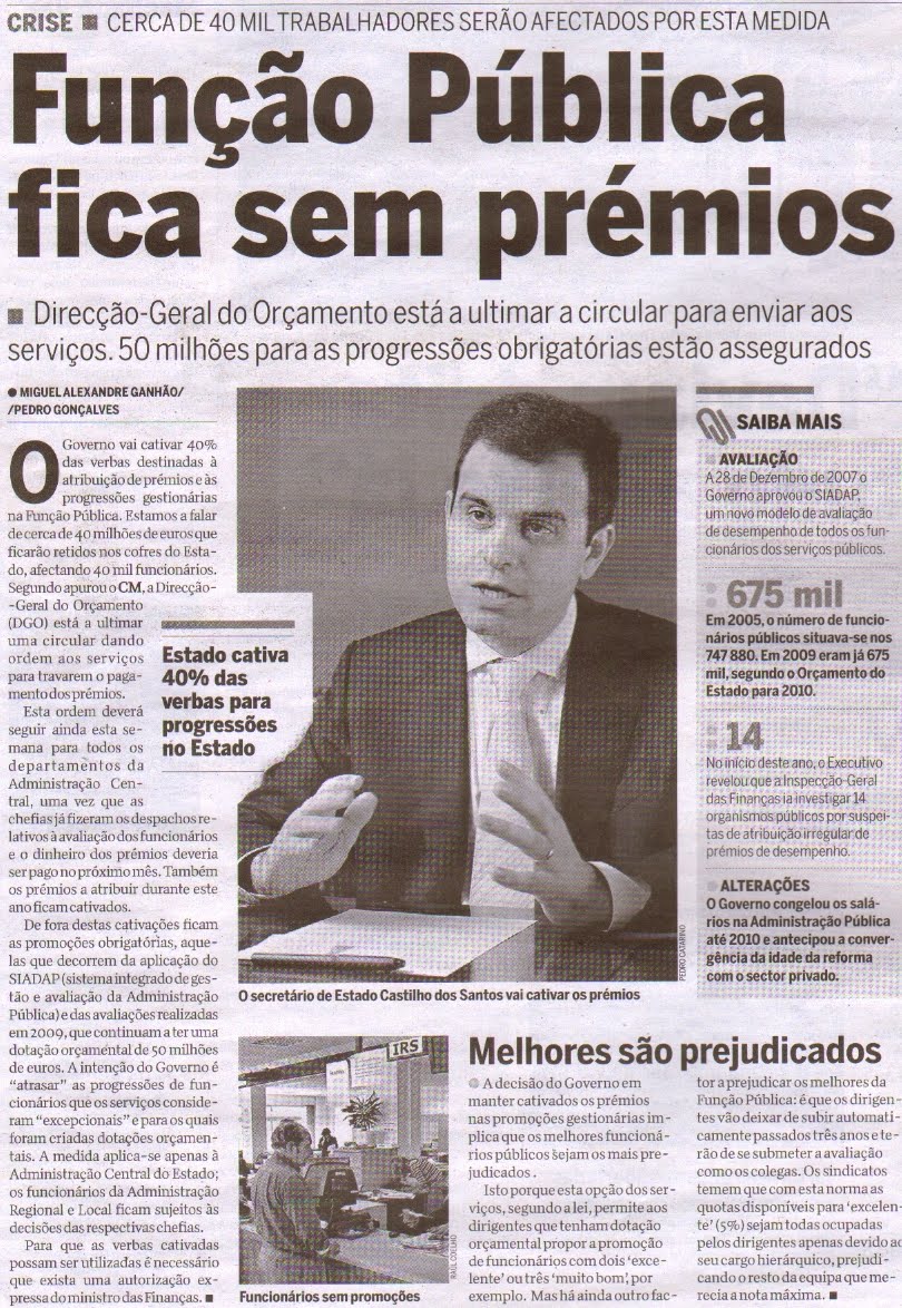 Impedem-nos de receber prémios (estamos a falar do equivalente a uma remuneração mensal que pode ir de uns míseros 500€ - arredondando números – no caso dos assistentes operacionais a cerca de 3.000€ no caso dos dirigentes intermédios de 2.º grau, num universo de possíveis beneficiários que será sempre inferior aos 5% do total, pois nem todos os dirigentes os atribuem).